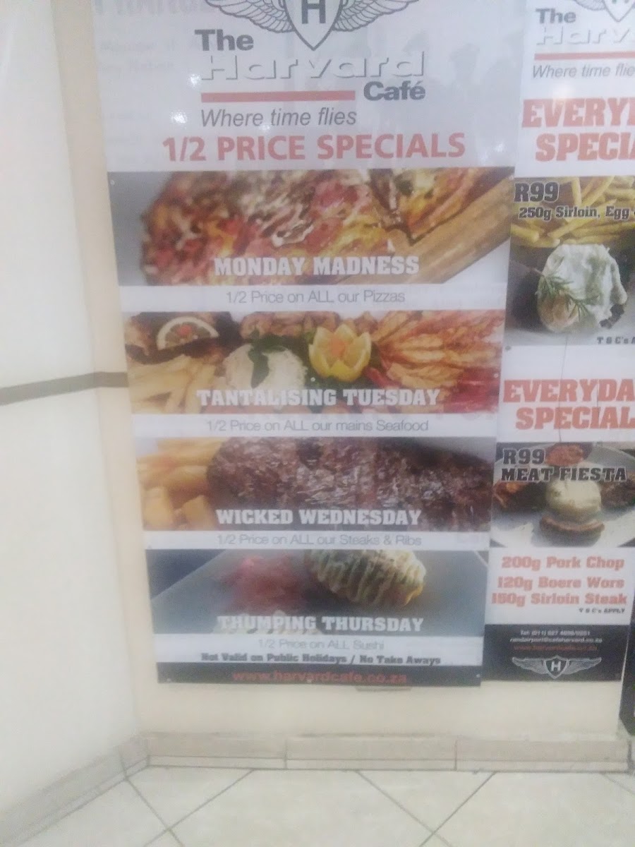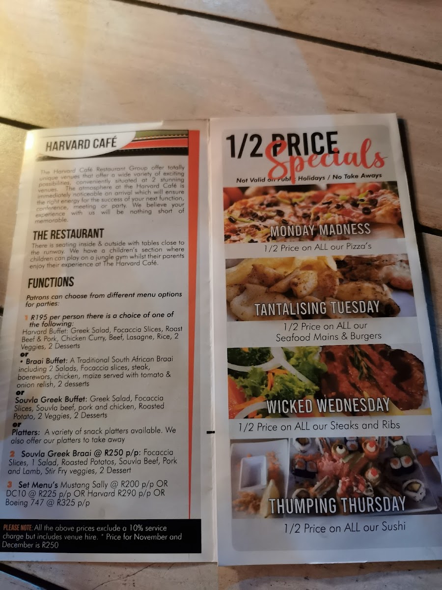 The Harvard Cafe Rand Airport Menu